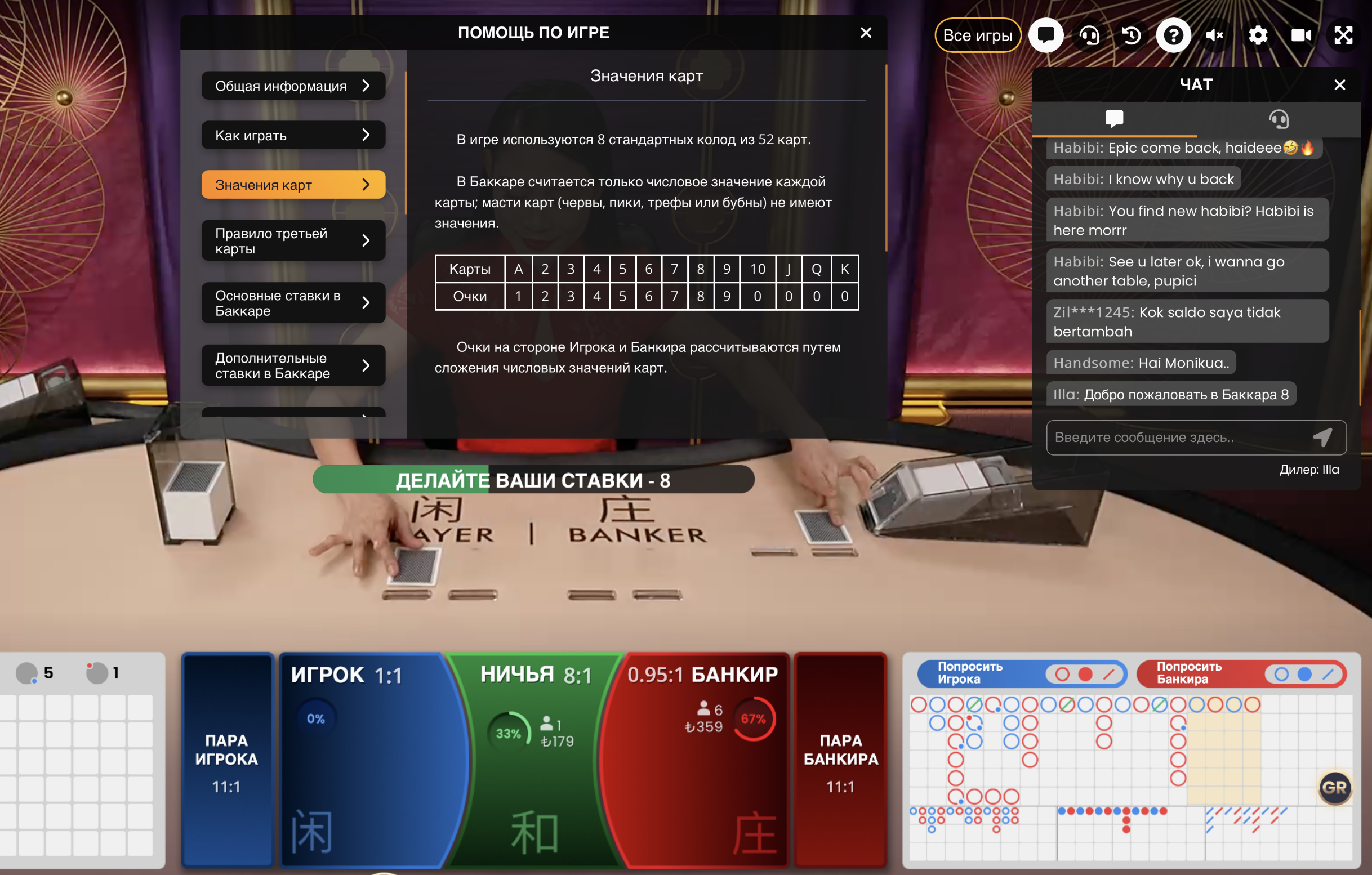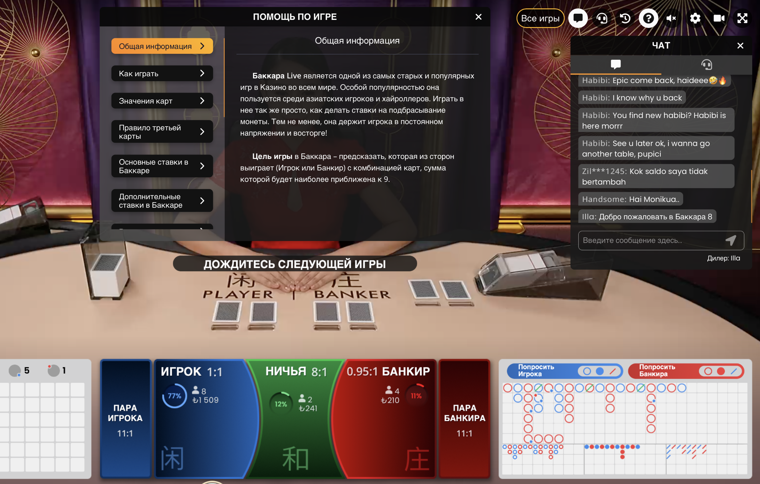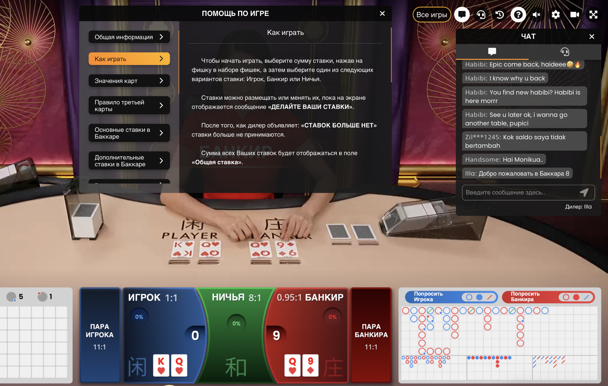 Это далеко не все термины. Погрузиться в мир Баккара и понять, какие слова наиболее распространены для обозначения определенных ситуаций, можно посредством начала игры. Перед этим советуем почитать раздел с новостями о Baccara. Там есть полезные сведения.