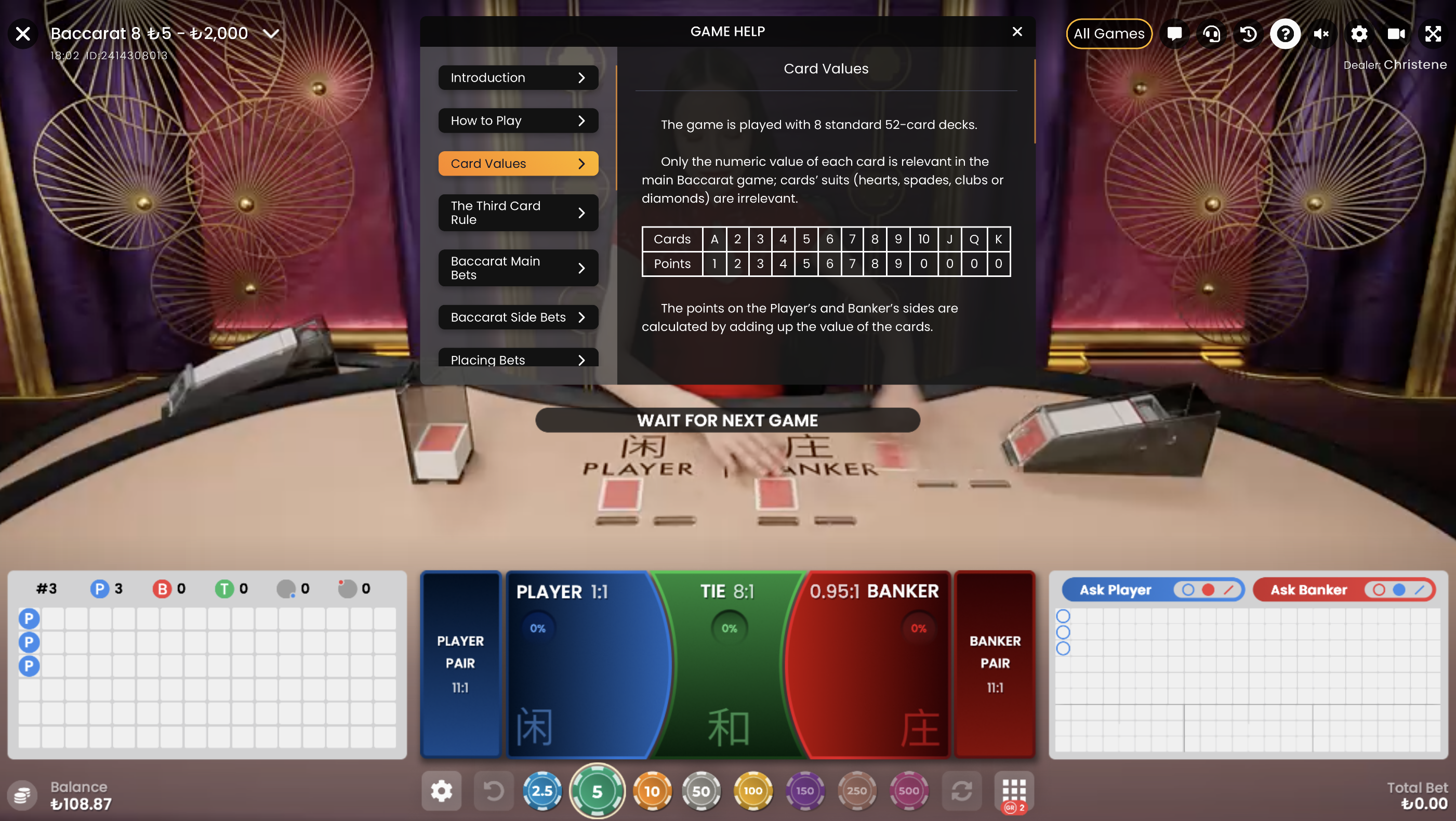 Quaisquer que sejam suas estratégias favoritas, não há táticas melhores desenvolvidas e baseadas na experiência pessoal e não podem existir. Recomendamos que você experimente todas as opções da versão demo do jogo de cartas Baccarat. Lá você pode aprimorar suas habilidades com perfeição prática, escolher opções de ação que serão eficazes independentemente da situação.