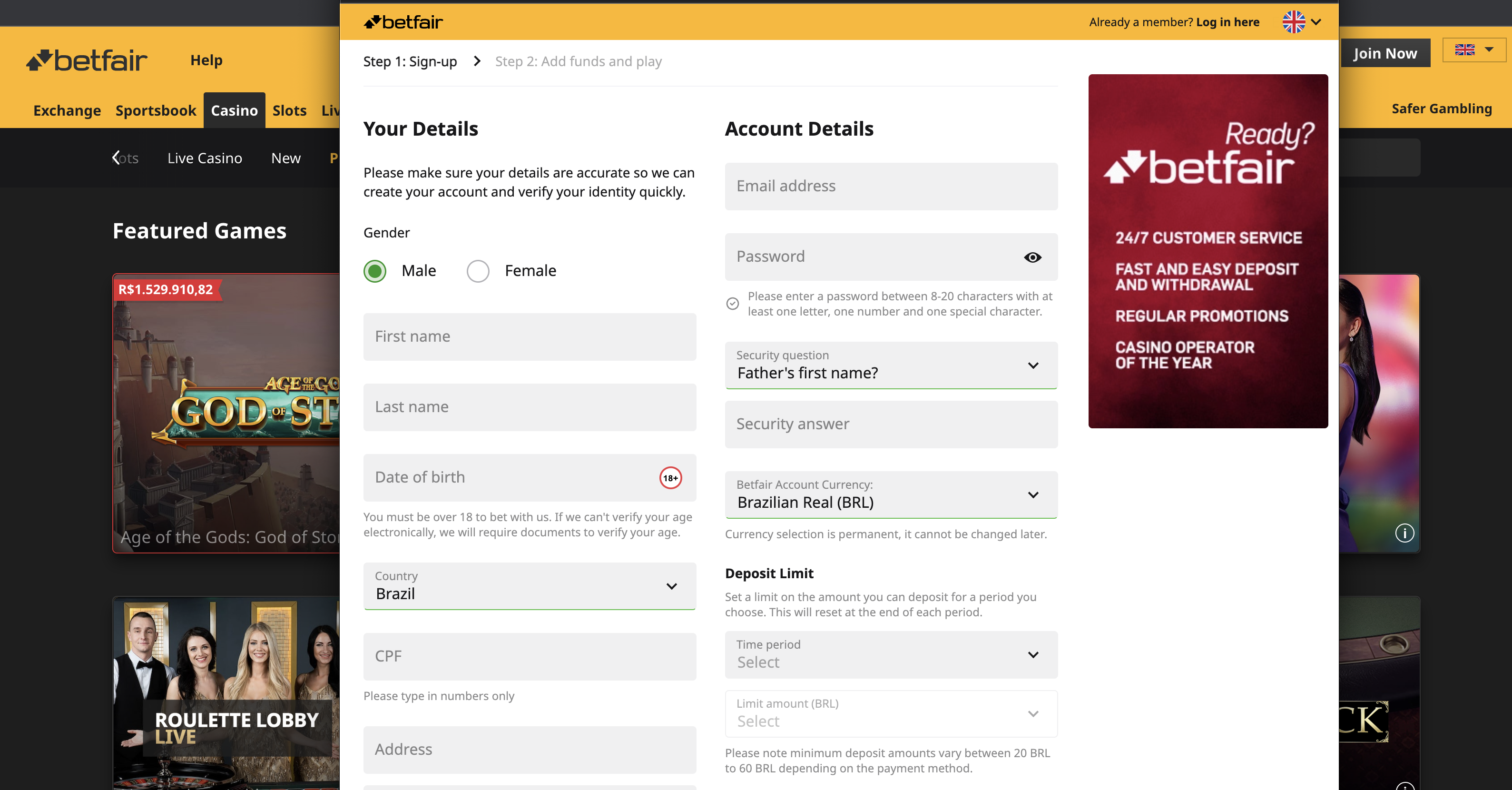 Для реєстрації у BetFair необхідне досягнення повноліття. Передбачені мови: англійська, іспанська, шведська, німецька, португальська.