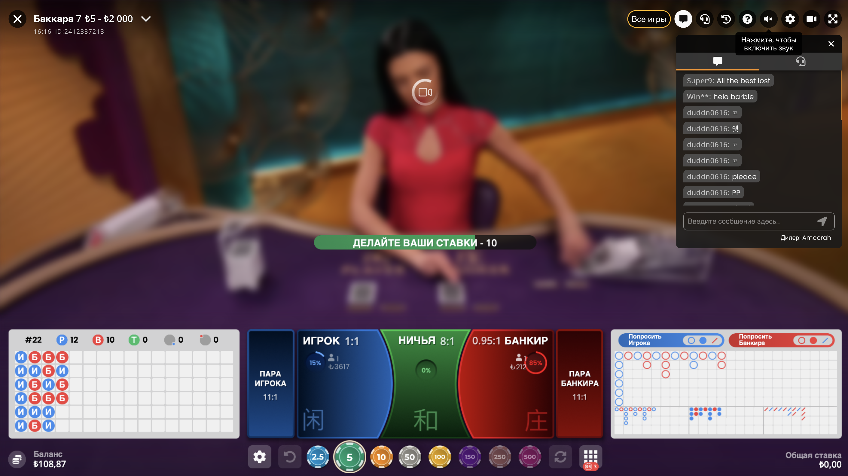 Hech qanday holatda, agar bunday xatolar yuzaga kelsa, biz Baccara o’ynashni tavsiya etmaymiz: